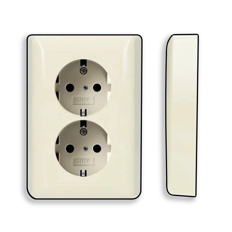 Gira wandcontactdoos 2-voudig randaarde verhoogde aanraakbeveiliging voor enkele inbouwdoos Systeem 55 creme glans (078301)