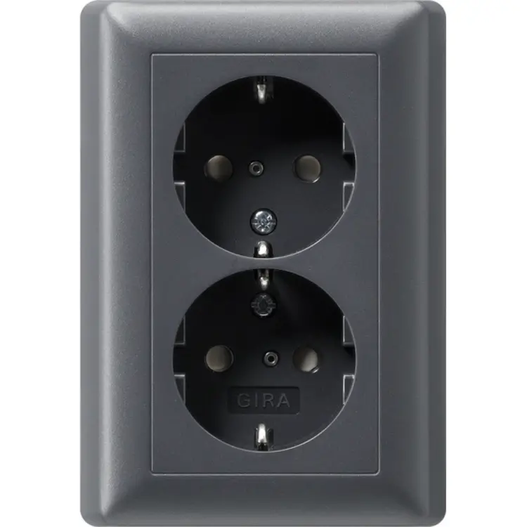 Gira wandcontactdoos 2-voudig randaarde verhoogde aanraakbeveiliging voor enkele inbouwdoos Systeem 55 antraciet mat (078328)