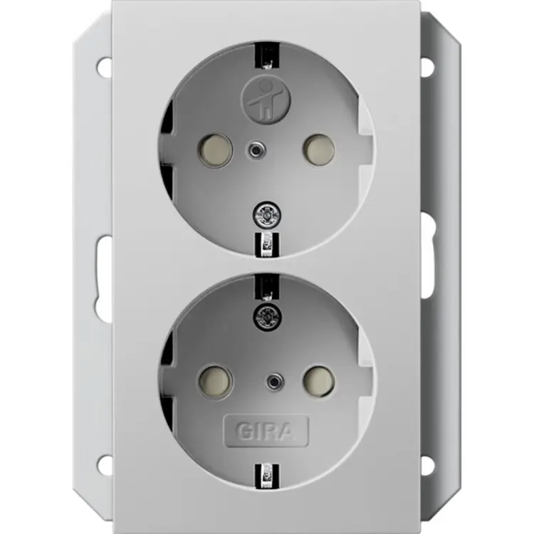 Gira wandcontactdoos 2-voudig randaarde verhoogde aanraakbeveiliging voor enkele inbouwdoos Systeem 55 grijs mat (2731015)