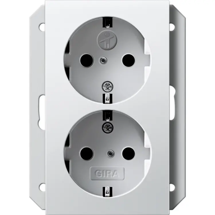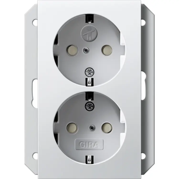Gira wandcontactdoos 2-voudig randaarde verhoogde aanraakbeveiliging voor enkele inbouwdoos Systeem 55 wit glans (273103)