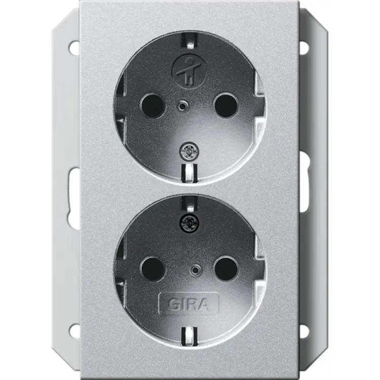 Gira wandcontactdoos 2-voudig randaarde verhoogde aanraakbeveiliging voor enkele inbouwdoos Systeem 55 aluminium mat (273126)