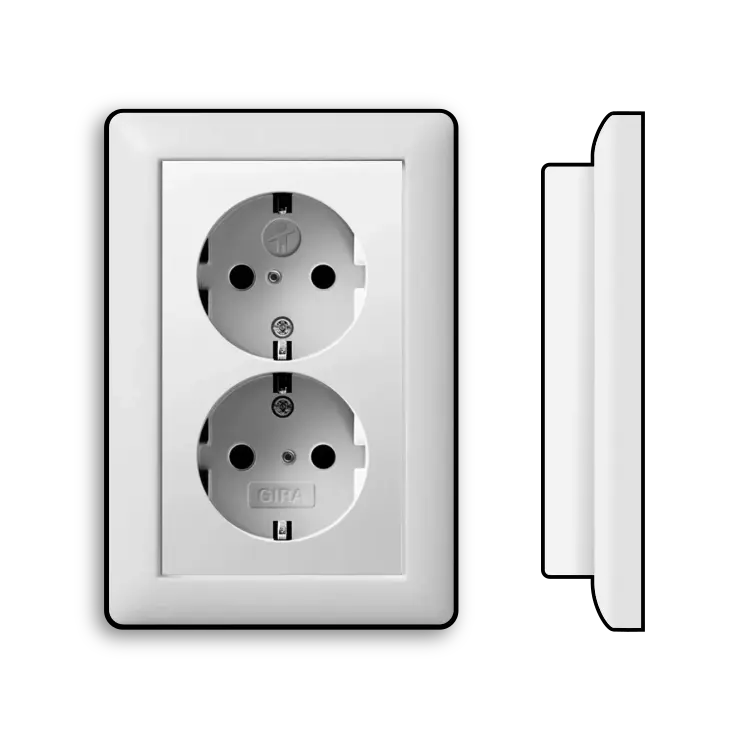 Dubbel stopcontact met randaarde en verhoogde aanraakbeveiliging, geschikt voor een enkele (ronde) inbouwdoos. Rondom afdekken met een 1,5-voudig afdekraam in de gewenste kleur/serie. Systeem 55, kleur: wit mat. Meer informatie »